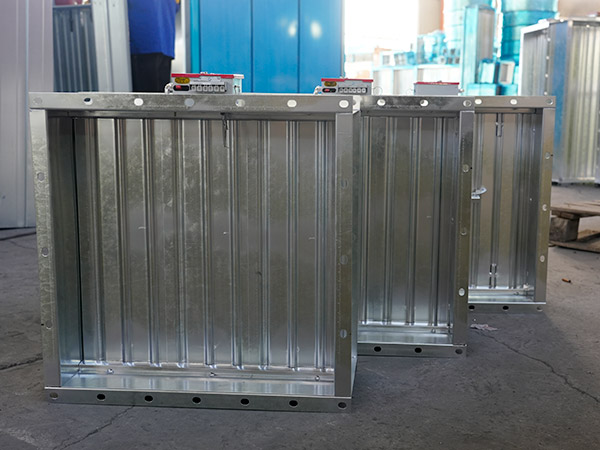 防煙防火調節閥,常(cháng)開,70度關(guān)閉,同1,不過多一個電訊號輸入,可由消控室遠程控製關閉,一般用於(yú)平時送風、火災補風共(gòng)用風管係(xì)統中,火災時可控製關閉不需要補風的(de)房間;