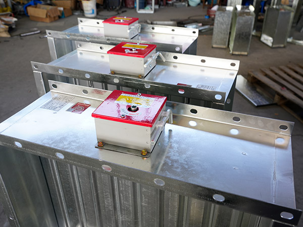 防火閥,常開,70℃、150℃或者280℃關閉,一(yī)般(bān)安裝(zhuāng)在(zài)風管穿越防火牆(qiáng)和結構變形縫處,起火災控製作用,可(kě)以設置輸出電訊(xùn)號,溫度超過70℃、150℃或者280℃時閥門關閉,聯動送(補)風機(jī)關閉。